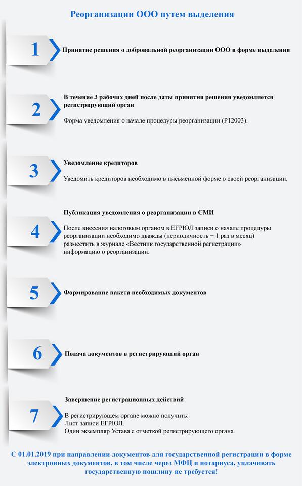 Выделение | Создание новой компании без прекращения реорганизуемой |