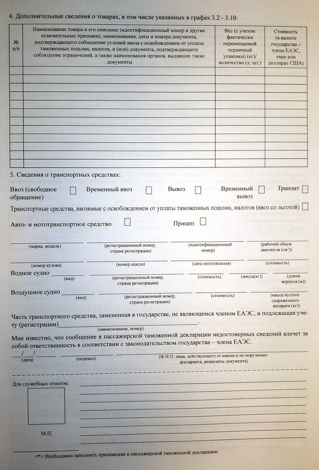Таможенная | Декларирование валютных ценностей | При перевозке крупных сумм |