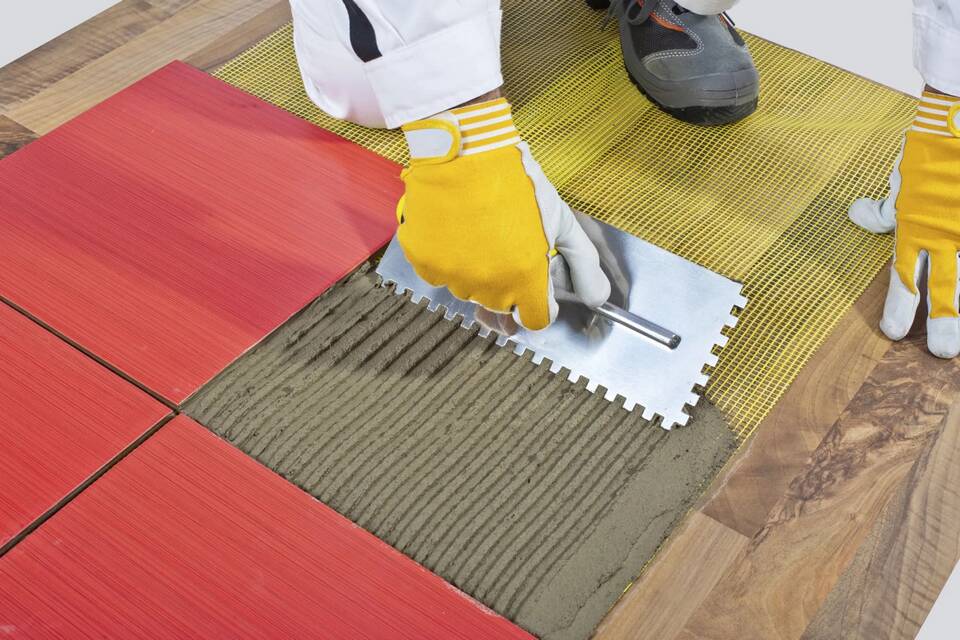 - Наносите клей на основание зубчатым шпателем