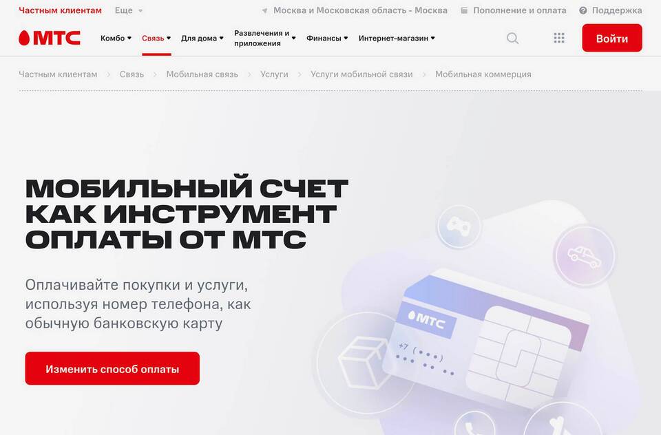 Способы оплаты услуг МТС