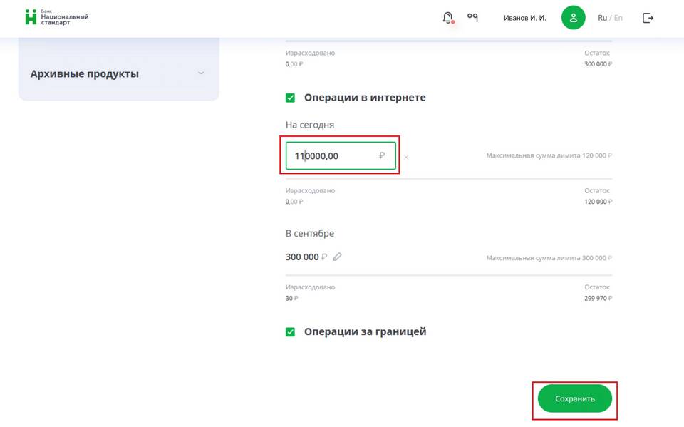 - Некоторые лимиты устанавливаются автоматически при открытии счета
