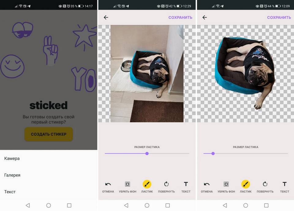 Sticker Maker | Выбор шаблона → Добавление текста → Сохранение |