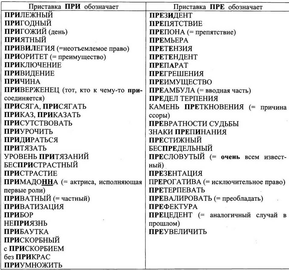 - Использовать мнемонику: "ПРЕпятствие - камень ПРЕткновения"