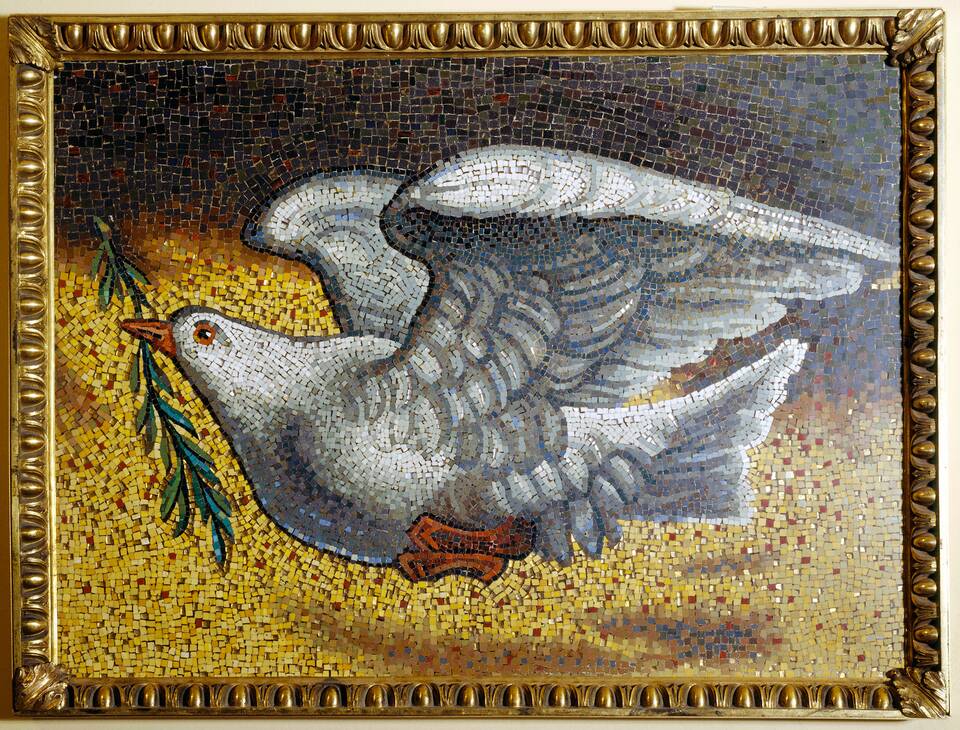 Образ голубя с веточкой восходит к библейской истории о Ноевом ковчеге: